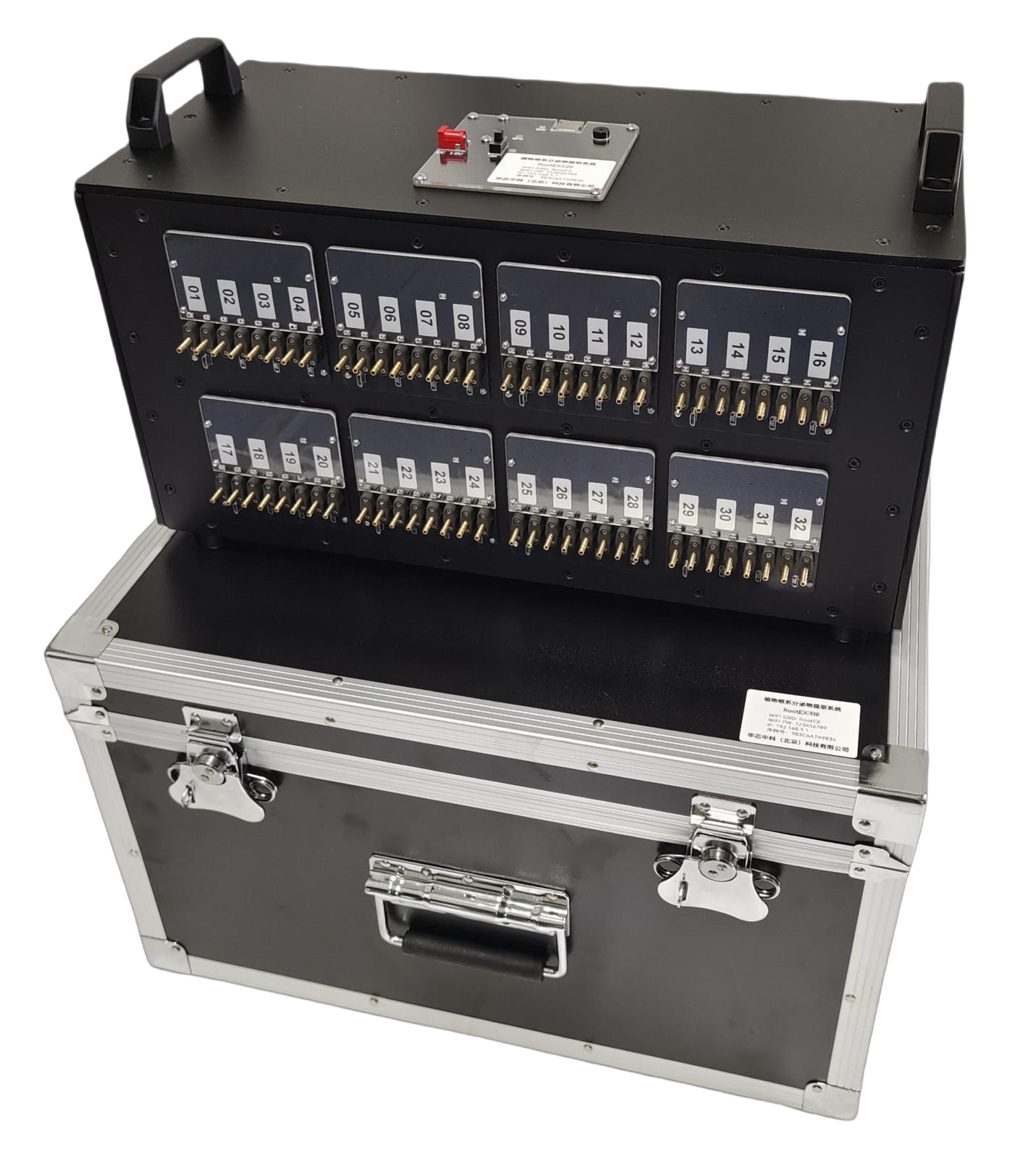 產(chǎn)品配置:主機1臺;精密數(shù)字液位計1個;標準100ml蓄液瓶6個;營養(yǎng)緩沖液存儲瓶1個;土壤抽液頭6個;移動端控制軟件APP 1套;PC端讀取數(shù)據(jù)軟件 1套;電源1套;